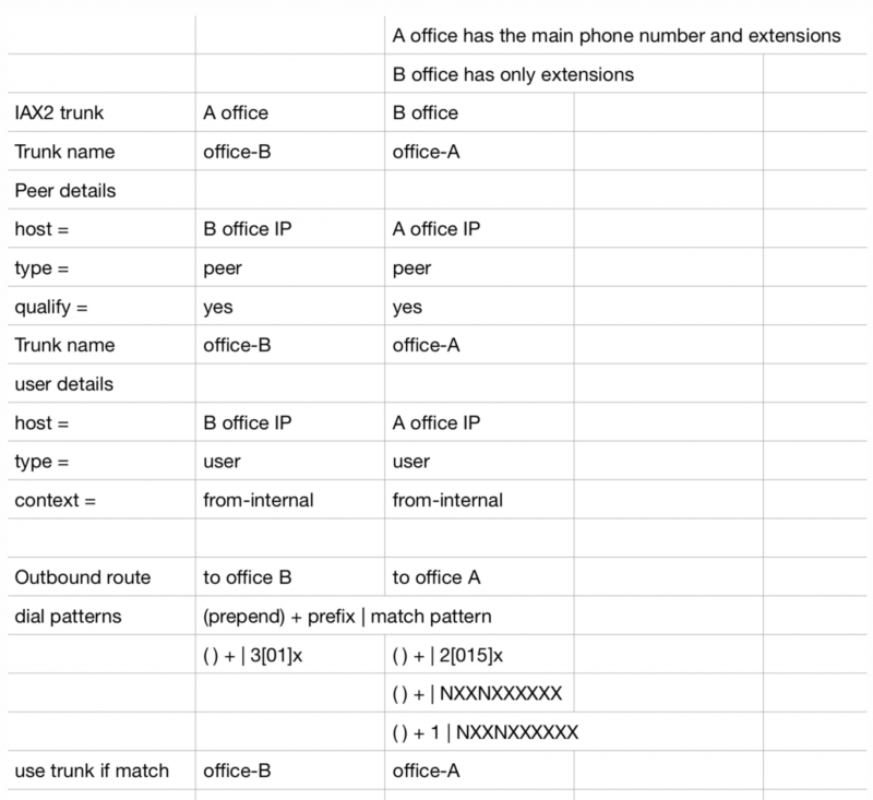 Interconnecting PBXs with IAX Trunks